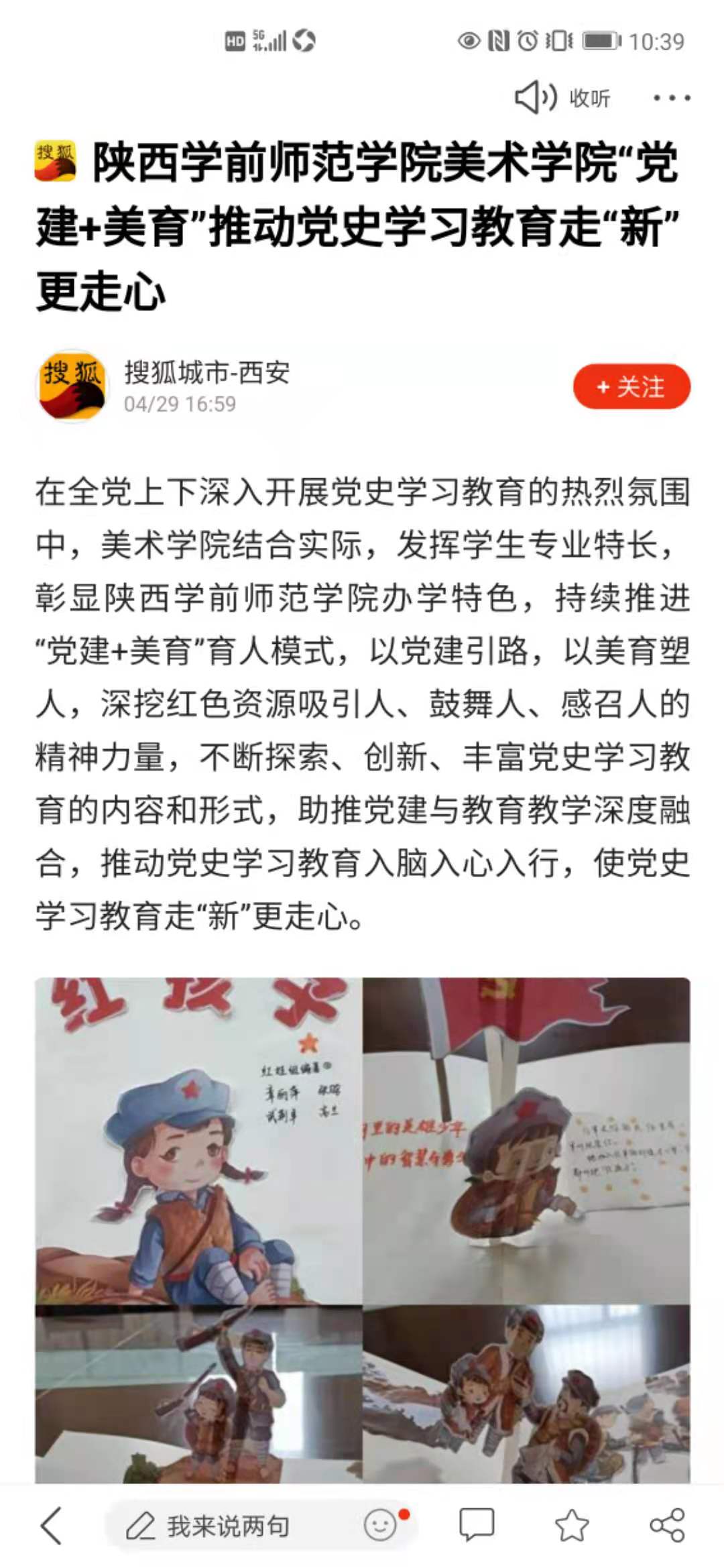 4月29日,搜狐新闻报道了申搏美术学院发挥学生专业特长,彰显学校办学特色,持续推进“党建+美育”育人模式,创新、丰富党史学习教育的内容和形式,使党史学习教育走“新”更走心。