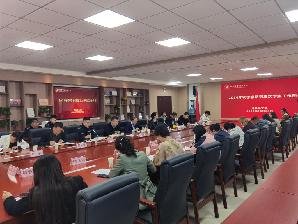 为全面梳理开学以来的学生工作情况,部署推进下半学期重点工作任务,持续推进学风建设和辅导员赋能工作走深走实,确保学生工作高质量发展取得新突破。10月28日上午,学校在德勤楼第五会议室召开2024年秋季学期第三次学生工作例会。学工部、教务处、保卫处、后勤服务集团、团委等部门负责人和各学院党委副书记参加会议,会议特别邀请常宁路派出所副所长赵成参会。校党委副书记唐宏出席会议并讲话,会议由学工部部长薛晓娟主持。