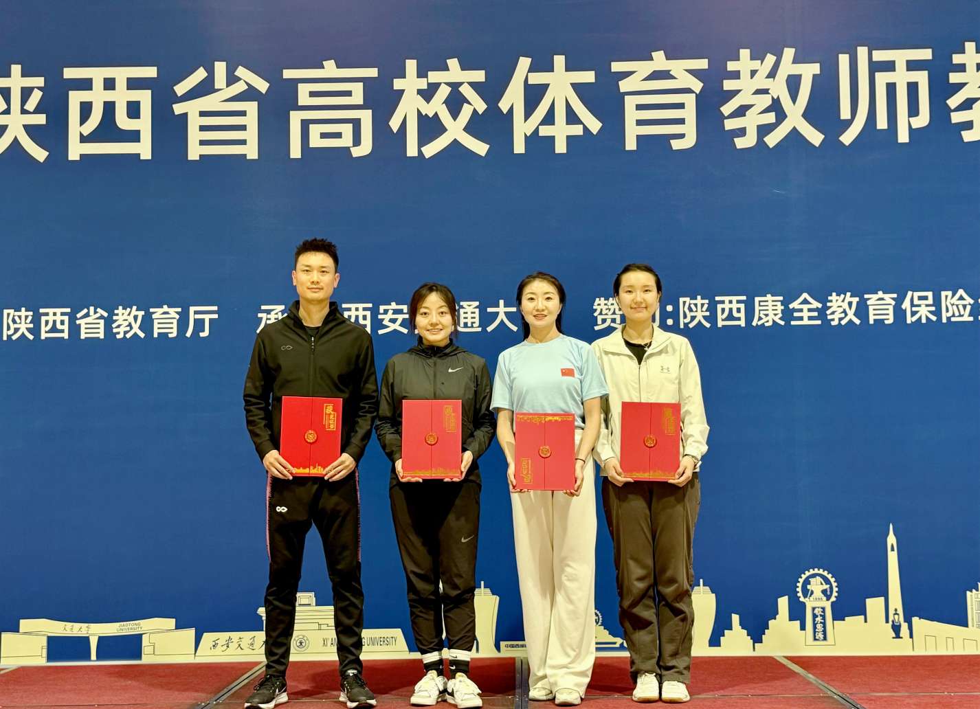 10月26-27日,2024年陕西省高校体育教师教学技能大赛在西安交通大学兴庆校区举行,申搏教师仲博文荣获本科青年组足球一等奖,陈虹洁、吴梦娇、侯怡瑄分别荣获本科青年组健美操、足球、乒乓球二等奖。