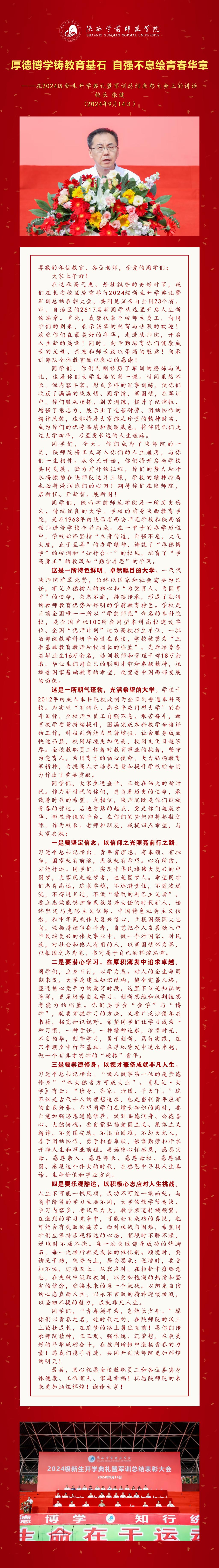 上一条:厚德博学铸教育基石 自强不息绘青春华章 ——在2024级新生开学典礼暨军训总结表彰大会上的讲话