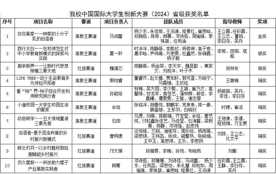 近日,中国国际大学生创新大赛(2024)省级决赛在西安邮电大学落幕,在申搏推荐的14个项目中,11个项目团队荣获省级奖励,其中包括金奖1项、银奖2项,铜奖8项,获奖数量和等级均达到历届之最,实现了金奖零的突破,取得了自参赛以来的最好成绩。