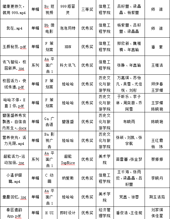 全国大学生广告艺术大赛(简称“大广赛”)是由教育部高等教育司指导,中国高等教育学会、教育部高等学校新闻传播学类专业教学指导委员会共同主办。大赛分为平面类、视频类、动画类、互动类、广播类、策划案类、广告语类、UI类、营销创客类等大类,是迄今为止全国规模大、覆盖高等院校广、参与师生人数多的全国性高校学科竞赛。此次比赛由西北大学承办,全省共有60所高校参加,推荐参赛参赛作品7268件。学校高度重视此次竞赛,广泛动员学生参与,组织开展了大学生广告艺术大赛校级比赛,推荐优秀作品参加省级比赛。
