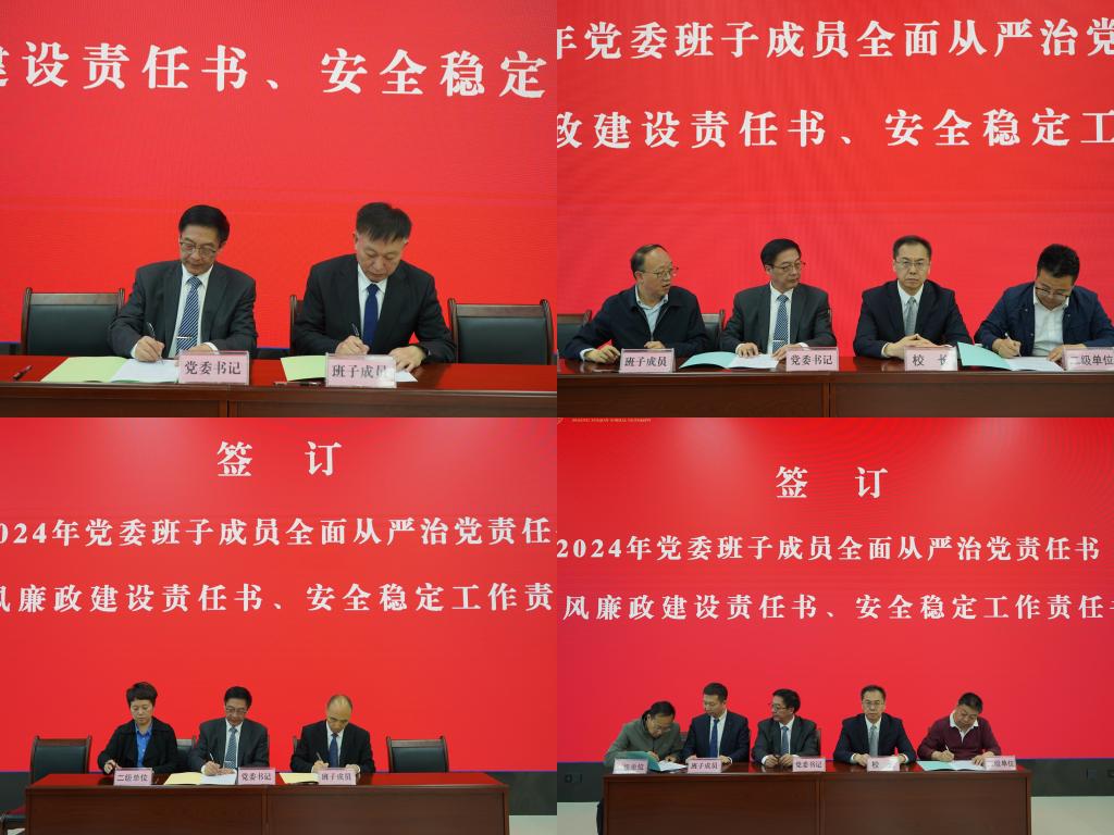会议现场签订了2024年领导班子成员全面从严治党责任书、党风廉政建设责任书和安全稳定工作责任书。