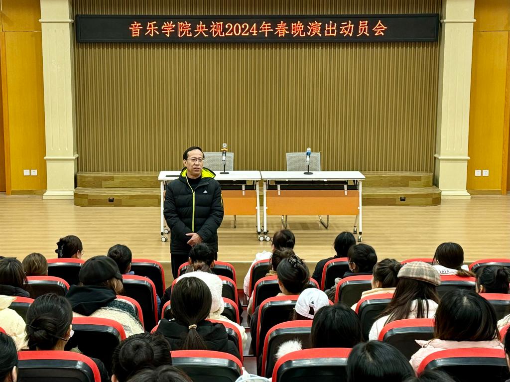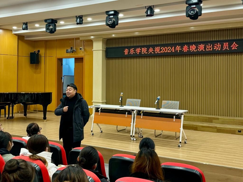 1月9日下午,音乐学院在大学生艺术教育中心召开2024年央视春晚西安分会场演出动员大会。学院全体党政领导、带队教师、121名学生演员参加会议。