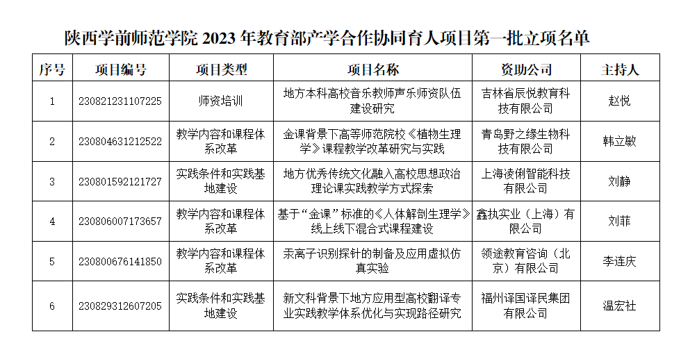 近日,教育部高等教育司公布了2023年第一批产学合作协同育人项目立项名单,申搏申报的《地方本科高校音乐教师声乐师资队伍建设研究》等6个项目获准立项。此次获批的项目,涵盖教学内容和课程体系改革、师资培训、实践条件和实践基地建设等多种合作类型。