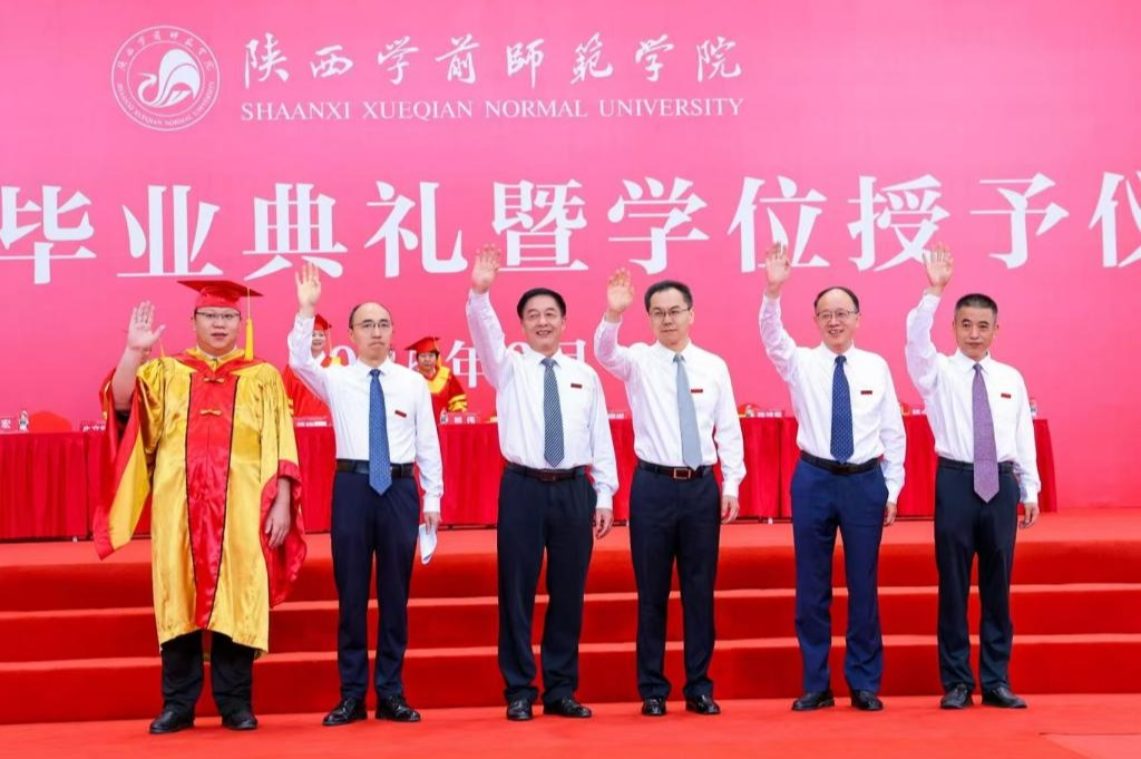 校领导邵必林、张健、权秋虎、唐宏、李明军、朱金卫,校学位评定委员会委员、各部门、各二级学院党政负责人、党委副书记、教师代表、校友代表、全体辅导员以及毕业生代表出席典礼。陕西省教育基金会领导孙卫国、傅虹、李智兵受邀参加典礼仪式。典礼由校党委副书记唐宏主持。典礼在庄严的国歌声中拉开帷幕,全体师生齐唱国歌。