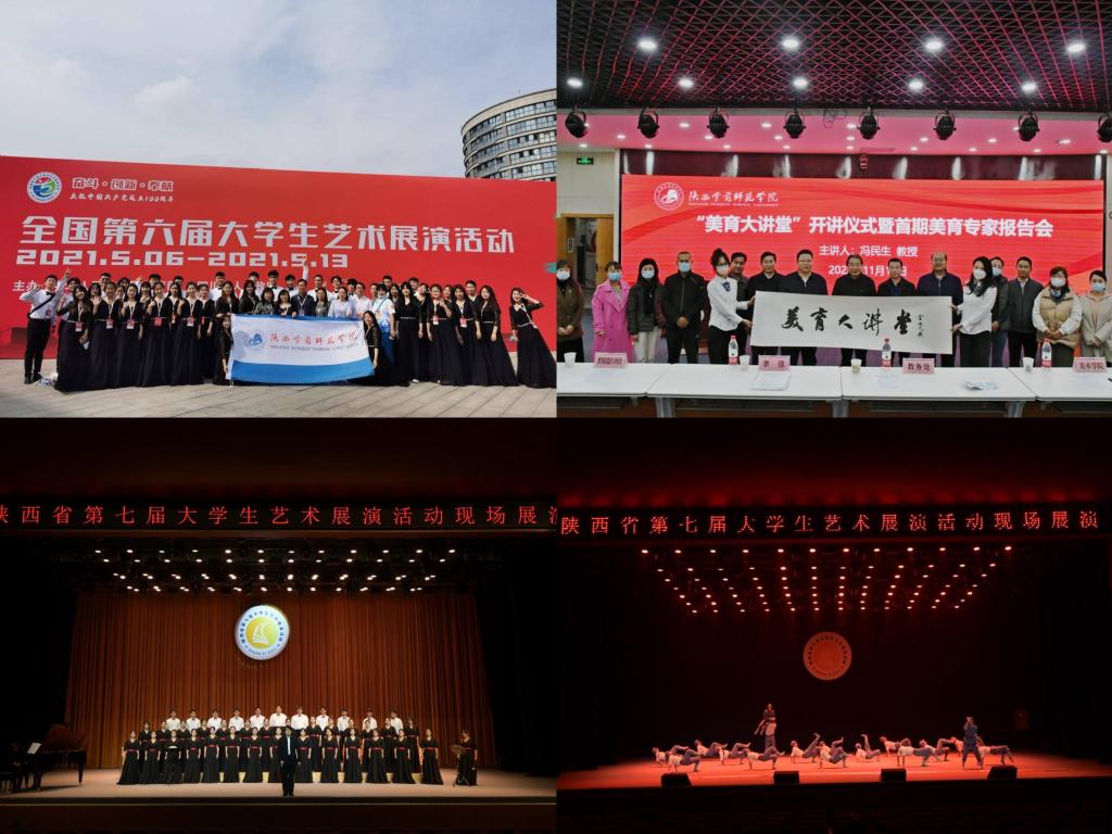 14. 美育浸润系统实施。建成大学生艺术教育中心;打造系列美育精品课程;启动“美育大讲堂”;成功培育上演《红色摇篮》《院长妈妈》《黄河的故事》等原创性舞剧;定期举办书法作品展、绘画作品展、毕业音乐会、舞蹈会等艺术实践活动。学校在全国第六届大学生艺术展演活动中勇夺甲组一等奖和优秀创作奖。音乐学专业师生代表陕西省参加全国高校教师和本科生基本功展示比赛斩获佳绩,学校荣获全国优秀组织奖。