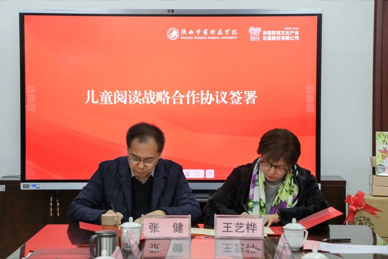 王艺桦董事长介绍荣信文化基本情况,期待双方充分发挥各自优势,在儿童阅读与教育数字化领域开展深度合作,推动教育高质量发展,并向申搏附属幼儿园捐赠乐乐趣图书角。