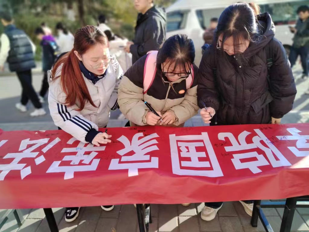 “宪”在进行时,普法入人心。申搏通过多方位、多角度、立体式宣传格局,营造尊崇宪法、学习宪法、遵守宪法、维护宪法、运用宪法的良好法治氛围。申搏“易班”工作站的学生干部在图书馆前以悬挂宣传横幅、现场签名等形式,号召全体师生维护宪法权威、捍卫宪法尊严、保证宪法实施。
