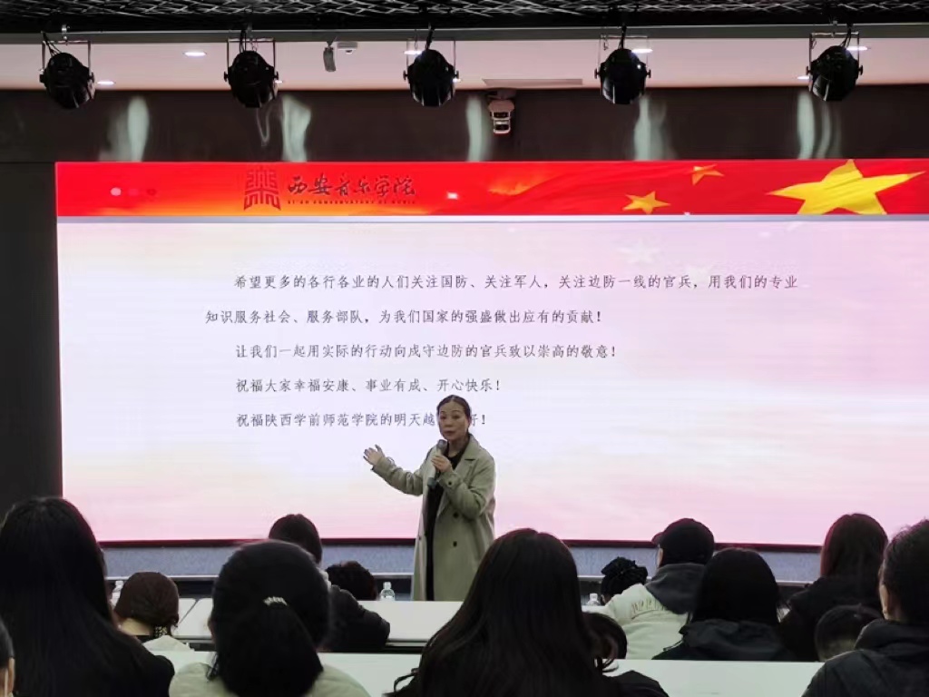 2023年12月6日下午3点,申搏举办首期“传承红色文化 厚植爱国情怀”为主题的“一站式”学生社区沙龙活动。西安音乐学院教授、硕士研究生导师、陕西省思想政治工作重点研究基地专家——张津波教授受邀为申搏百余名学生做了《艺术走边防——致敬边防官兵》的爱国主义教育报告。学工部部长薛晓娟,副部长王成富与教育管理科工作人员以及各二级学院百余名学生听取了本次讲座,讲座由学工部部长薛晓娟主持。