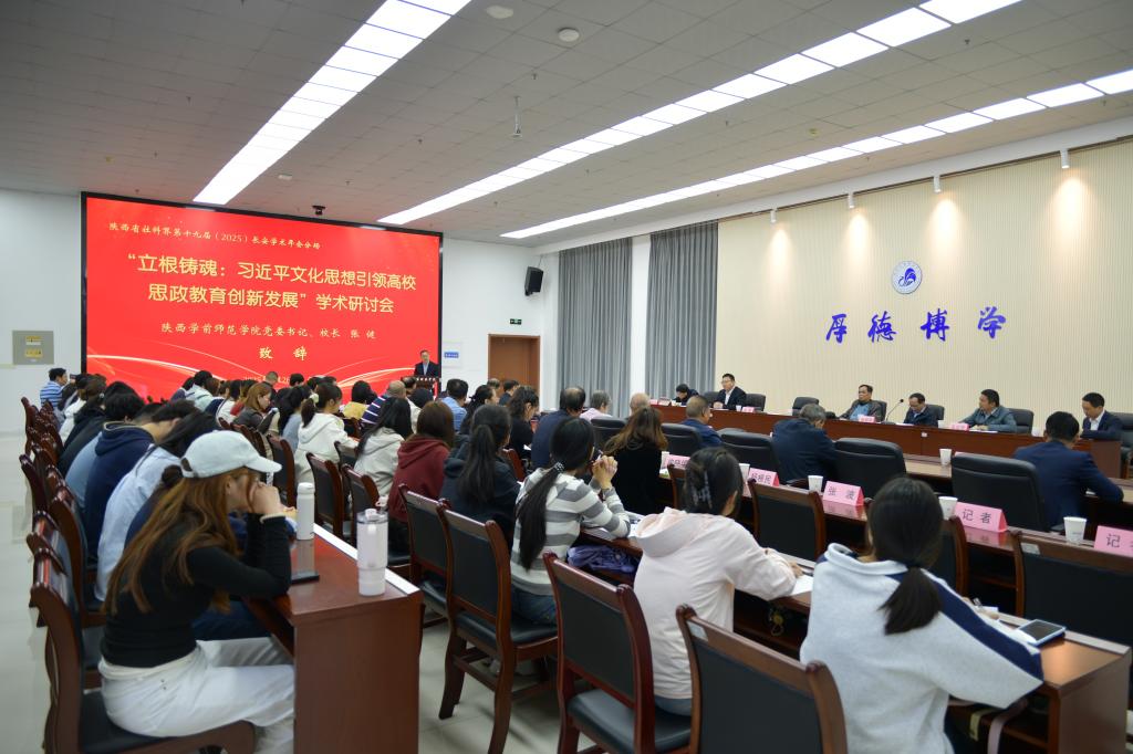 张健在致辞中指出,陕西省社科界第十九届(2025)长安学术年会分场活动在学校举办,是对申搏思政建设的高度重视和思政教育的有力促进。要以此次学术研讨会为新起点,牢记习近平总书记“立报国强国大志向”的嘱托,在文化传承中厚植师范本色,在守正创新中培育大国良师,为教育强国建设注入澎湃的红色动能。
