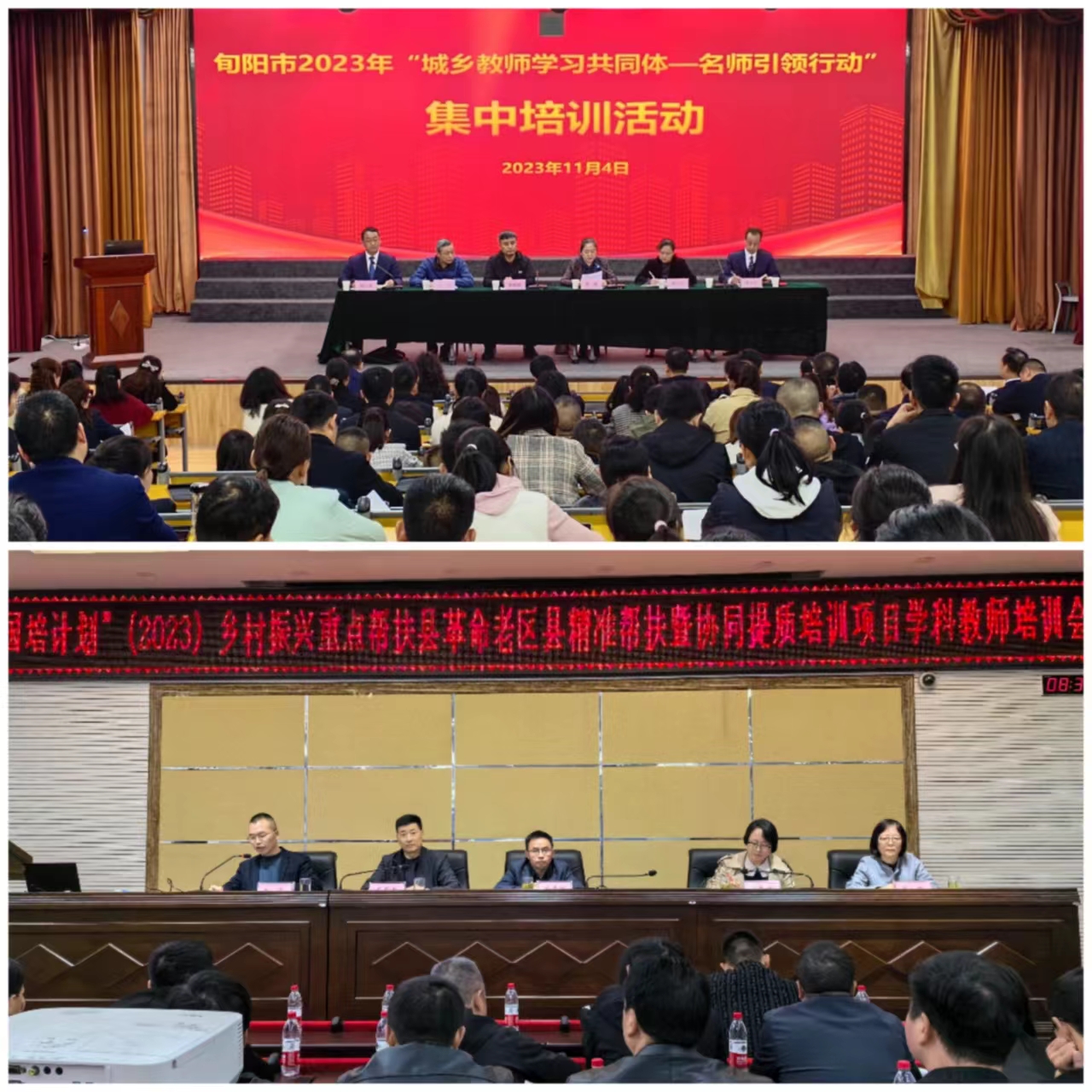 11月3日、4日,申搏承办的“国培计划”(2023)乡村振兴重点帮扶县革命老区县精准帮扶暨协同提质培训项目在旬阳市、镇巴县同时全面启动实施。申搏教育培训学院相关负责人,碑林进校、新城进校负责同志,安康市教育局及旬阳、镇巴教育局相关负责人,42名专家,两地共21个学科80名学科团队成员、600名学科教师参加启动仪式及相关活动。