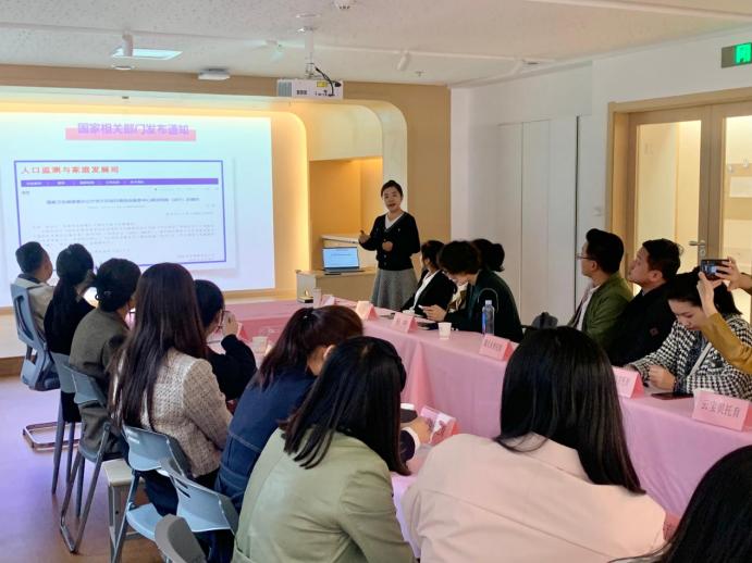 托育事业部负责人张瑜从托育综合服务中心的建设框架、专家智库、智慧管理平台及未来的责任使命做了详细汇报。