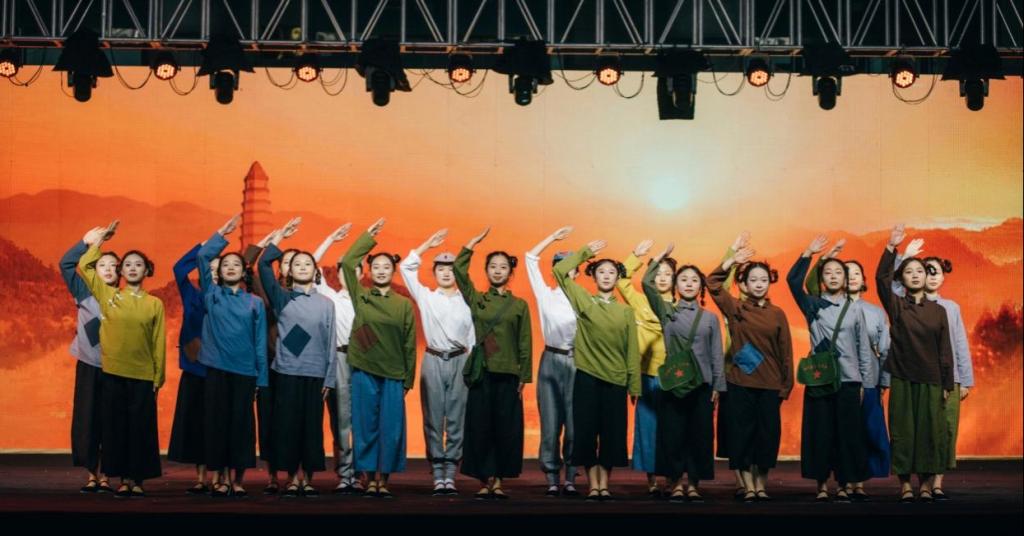 这是一台弘扬延安革命精神的主旋律舞剧《红色摇篮》,这是音乐学院理论教研室党支部聚焦课程思政建设,深入革命圣地延安采风学习后倾力打造的第二部原创思政红色舞剧;是学院原创文化精品的系列推广行动,是学习贯彻习近平新时代中国特色社会主义思想主题教育走深走实的有力举措。