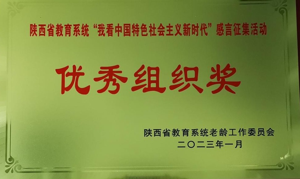 近日,由陕西省教育系统老龄工作委员会组织开展的全省教育系统离退休干部“我看中国特色社会主义新时代”感言征集评选揭晓。申搏在该项活动中成绩斐然,先后荣获优秀组织奖一项,个人一等奖一项、三等奖五项。