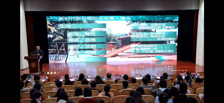会议在大学主楼报告厅拉开序幕。清心悦耳的古筝弹奏、童真童趣的水墨画展示,引发现场阵阵掌声。在“专家视角•生态育人”学术专场,我校幼儿教育学院院长何善平教授作为第一个演讲专家,发表了题为《幼有善育——生态育人模式的创新实践》的主旨演讲。何善平教授着重阐释了“自然性、道德性、法律性、目的性”的新时代新征程的生态育人理念,分析了践行新时代新征程“生态观、儿童观、课程观、管理观、文化观”的生态育人实践形态,提出了迈向“幼有善育”这一中国学前教育生态育人的未来追求。何善平教授的主旨演讲受线下500多位、线上10多万听众的热烈反应和好评。
