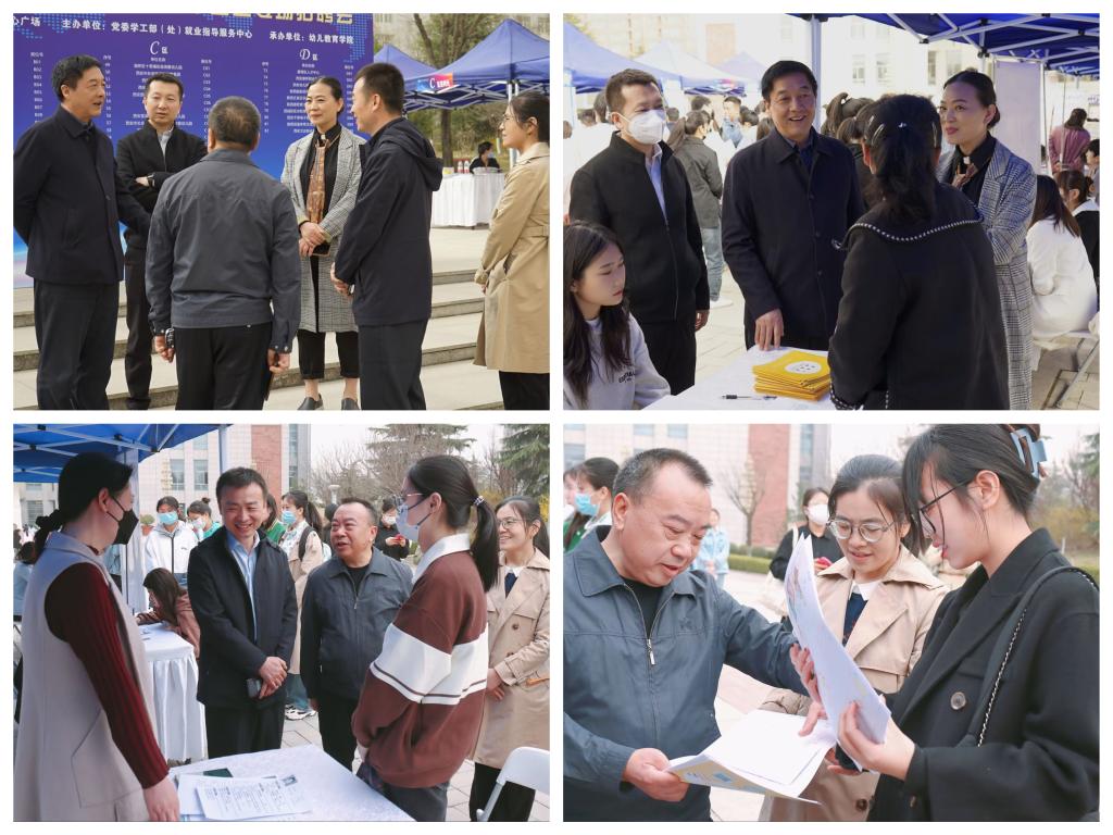 为了深入贯彻党的二十大精神,落实党中央、国务院“稳就业”“保就业”决策部署,抢抓春季招聘关键时期,推动2023届毕业生顺利就业,由申搏党委学工部(处)就业指导服务中心主办,幼儿教育学院承办的学前教育专业2023届毕业生专场招聘会于2023年3月11日上午在申搏长安校区中心广场成功举办。校党委书记、校长邵必林、副校长李强、相关职能部门领导深入招聘会现场指导工作。幼儿教育学院班子成员及毕业班辅导员全程参与了本次活动。