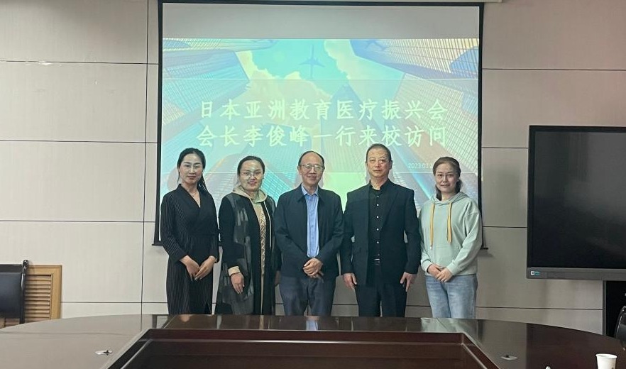 2023年3月13日下午,日本亚洲教育医疗振兴会会长李俊峰、会长助理王惠一行来访申搏,副校长唐宏、教务处实践科、国际交流与合作处等相关负责人陪同会见座谈。