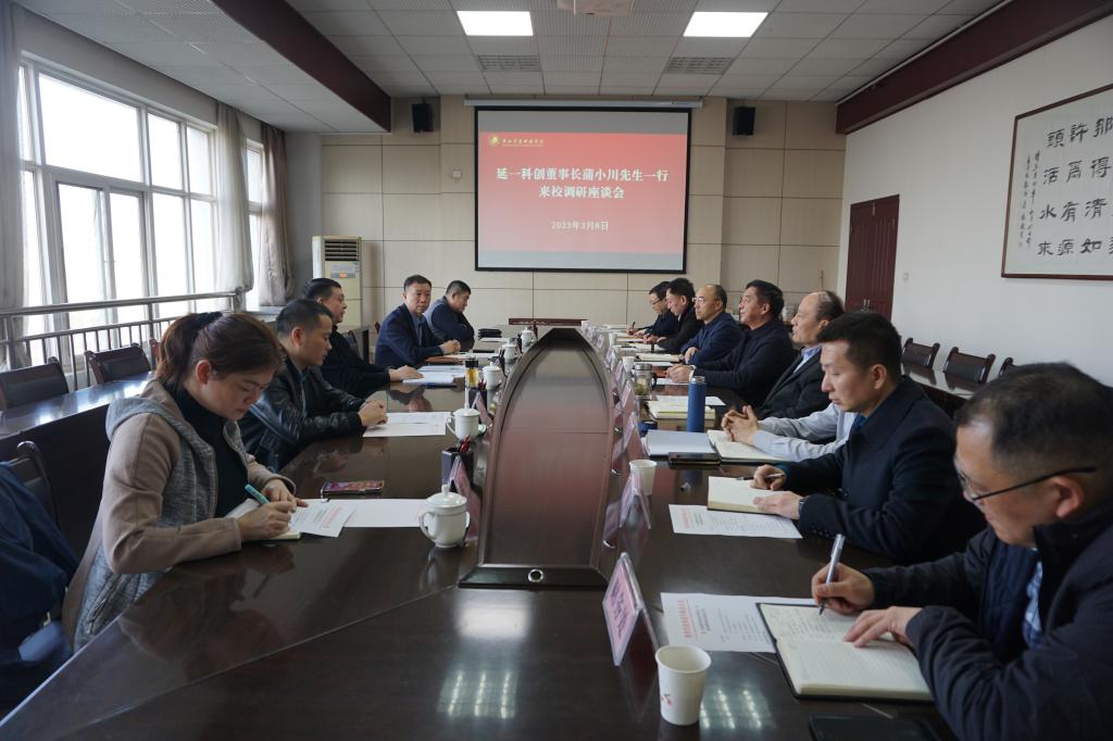 3月8日下午,陕西省人民政府决策咨询委员会委员、延长石油集团首席经济学家、陕西延一科技创业投资有限公司董事长薄小川一行来校调研交流,校党委书记、校长邵必林和在校班子成员出席会议,党政办公室、财务处、发展规划处等有关负责人参加会议。