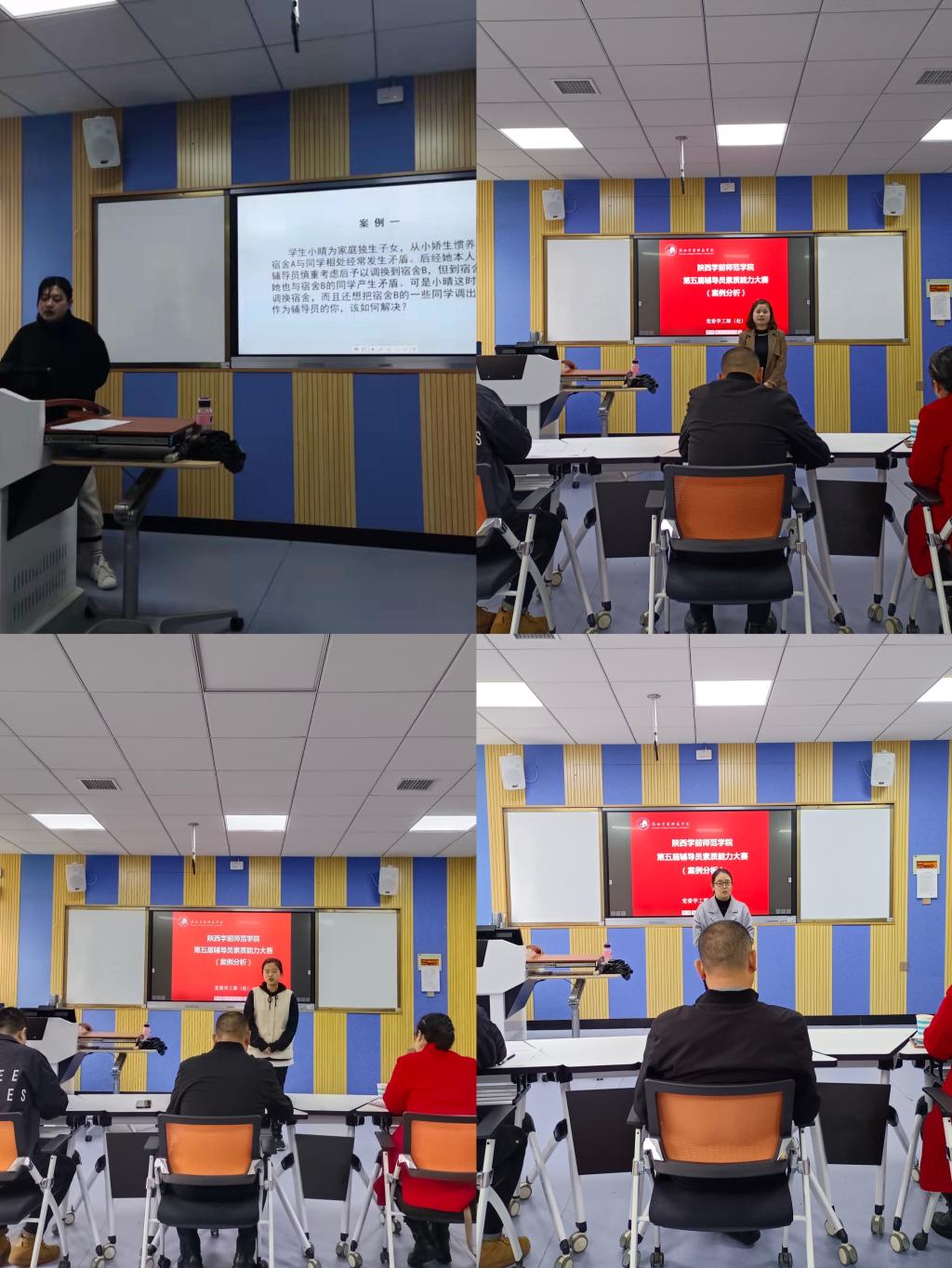 此次大赛严格按照辅导员素质能力大赛国赛、省赛规定的比赛流程进行,共分为基础知识测试、案例分析和谈心谈话三个阶段。通过二级学院初赛,共推选11名辅导员进入校级决赛环节。