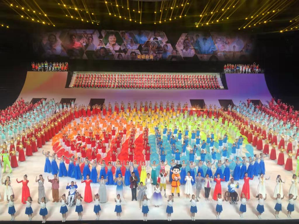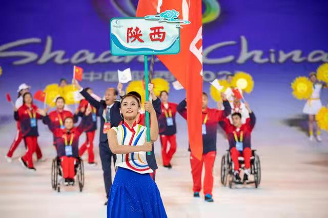 中华人民共和国第十一届残疾人运动会暨第八届特殊奥林匹克运动会于2021年10月22日晚8时在西安奥体中心举行开幕仪式。中共十九届中央政治局委员,国务院副总理孙春兰出席并宣布运动会开幕。在残特奥会的举办过程中,sunbet申搏官方网站200余名学生演员参与了尾声节目《心中有光》主题曲的表演。该节目主要展现了残疾人砥砺自强、拼搏奋进的昂扬人生姿态。除此之外,申搏还有8名仪式引导员,9名管理教师参与到活动之中。音乐学院任雨萌同学被仪式演出组和总导演一致选定为东道主“陕西”代表团的仪式引导,同其他6名学生(天津、辽宁、贵州、香港、湖南、黑龙江)出色完成开幕式上运动员代表队的引导工作。