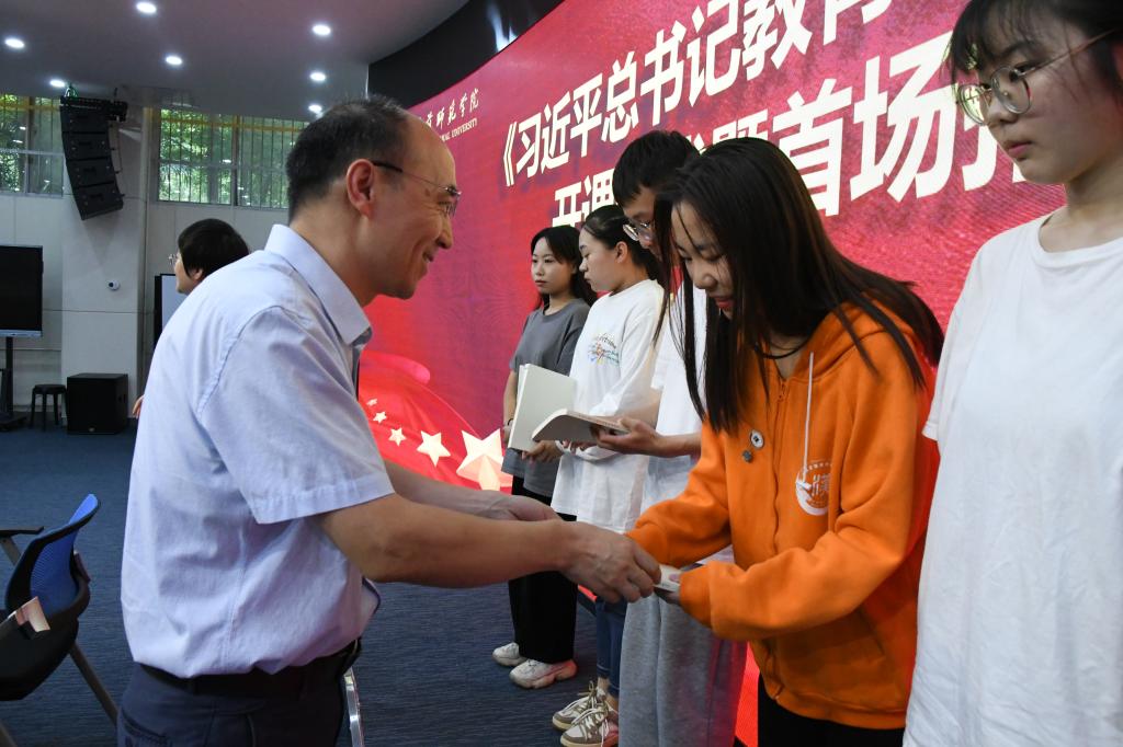 2021级“优师计划”学生代表和党委宣传部、党委学工部、教务处、教学质量监控与评估处、幼儿教育学院、教育科学学院、马克思主义学院、音乐学院等单位负责同志现场参加线下面授学习,其他班级新生通过视频直播同步参加学习。