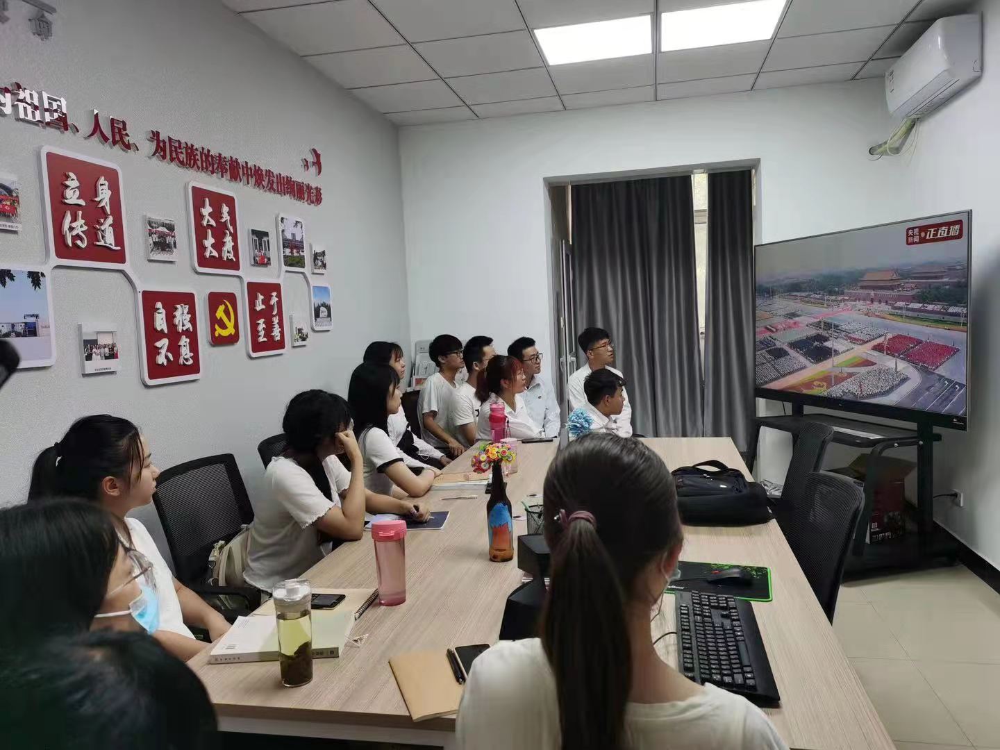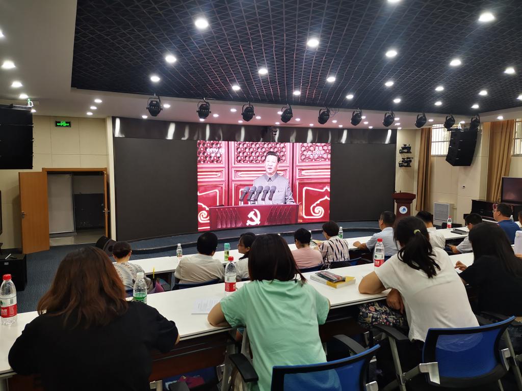 7月1日上午,庆祝中国共产党成立100周年大会在北京隆重举行,中共中央总书记、国家主席、中央军委主席习近平在大会上发表重要讲话。申搏师生分别以不同形式收看了庆祝中国共产党成立100周年大会实况转播,聆听了习近平总书记在大会上发表的重要讲话,学校党委理论学习中心组召开扩大学习会,组织观看大会实况转播;机关党委、各党总支组织召开二级中心组扩大理论学习会,组织各单位师生集体观看;党委学工部、团委组织学生党员和学生干部、广大团学青年以班级、小组和宿舍为单位集体观看。省委党史学习教育第十五巡回指导组全体成员莅临申搏检查指导收听收看庆祝大会情况,并深入学校各单位、各部门,一同观看了庆祝大会和习近平总书记发表重要讲话实况转播。
