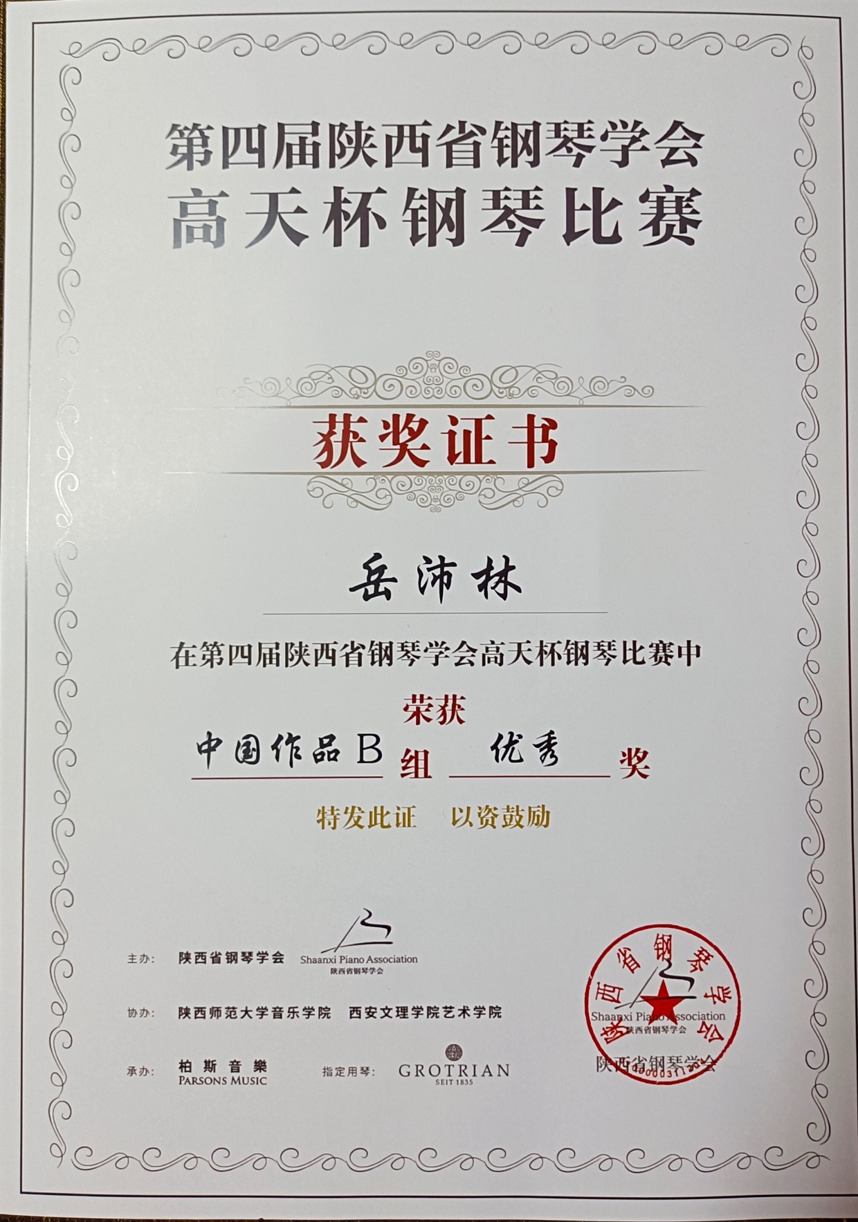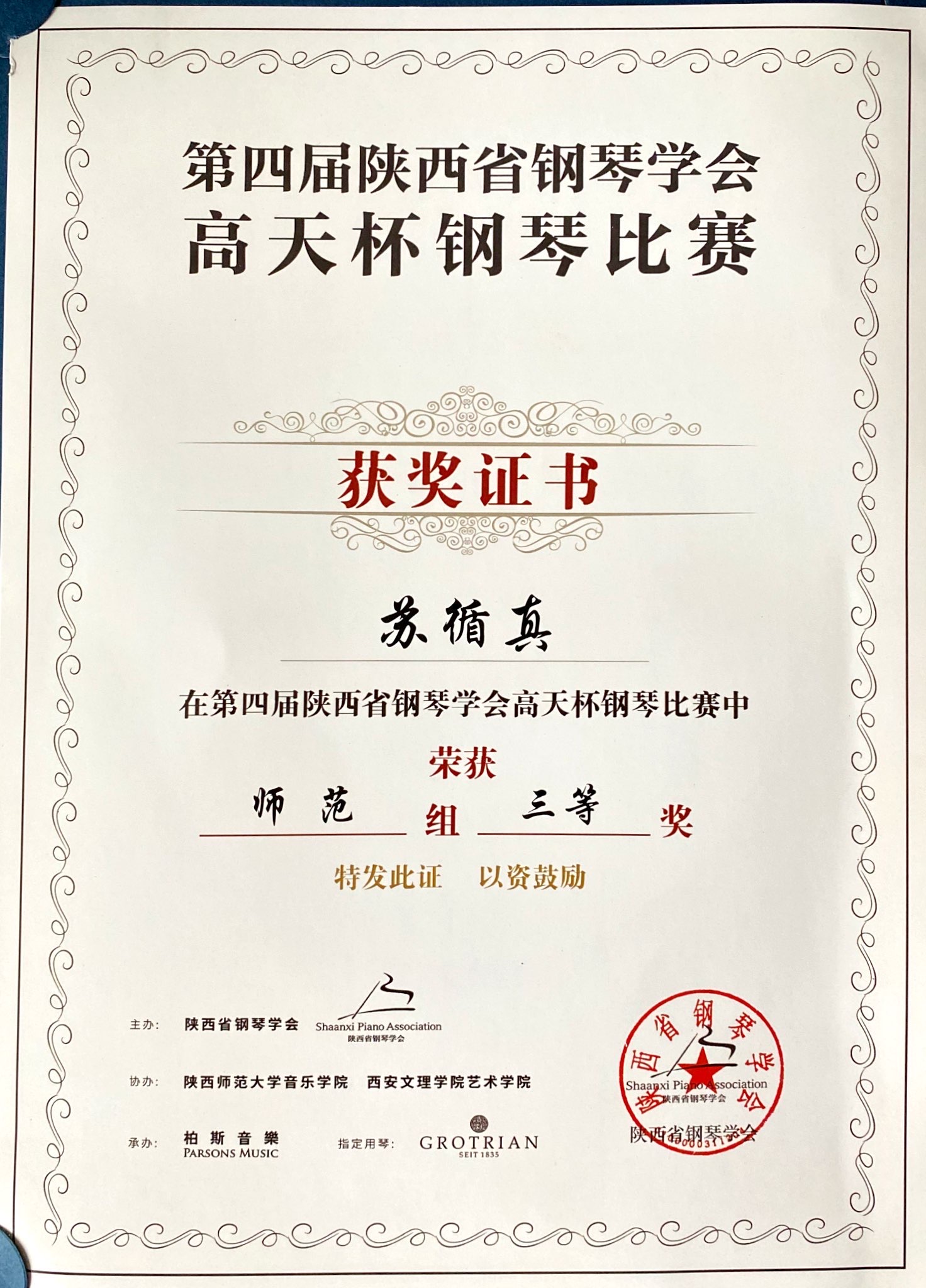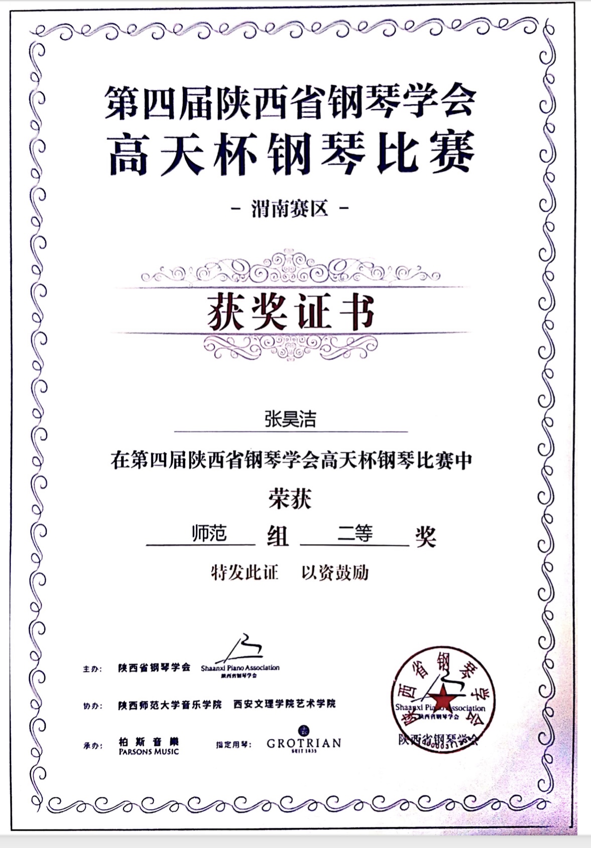 近日,由陕西省教育厅指导、陕西省钢琴学会主办,陕西师范大学、西安文理学院、柏斯集团等单位协办的第四届陕西省钢琴学会“高天杯”钢琴大赛在西安成功举行。经层层选拔,三轮赛制,申搏参赛师生表现优异,最终,2019级音乐学本科张昊洁获得分赛区师范组二等奖,2017级音乐学本科苏循真获得师范组三等奖,2019级音乐学本科岳沛林获得中国作品组优秀奖,指导教师白艳、黄乐为获得优秀指导教师奖。