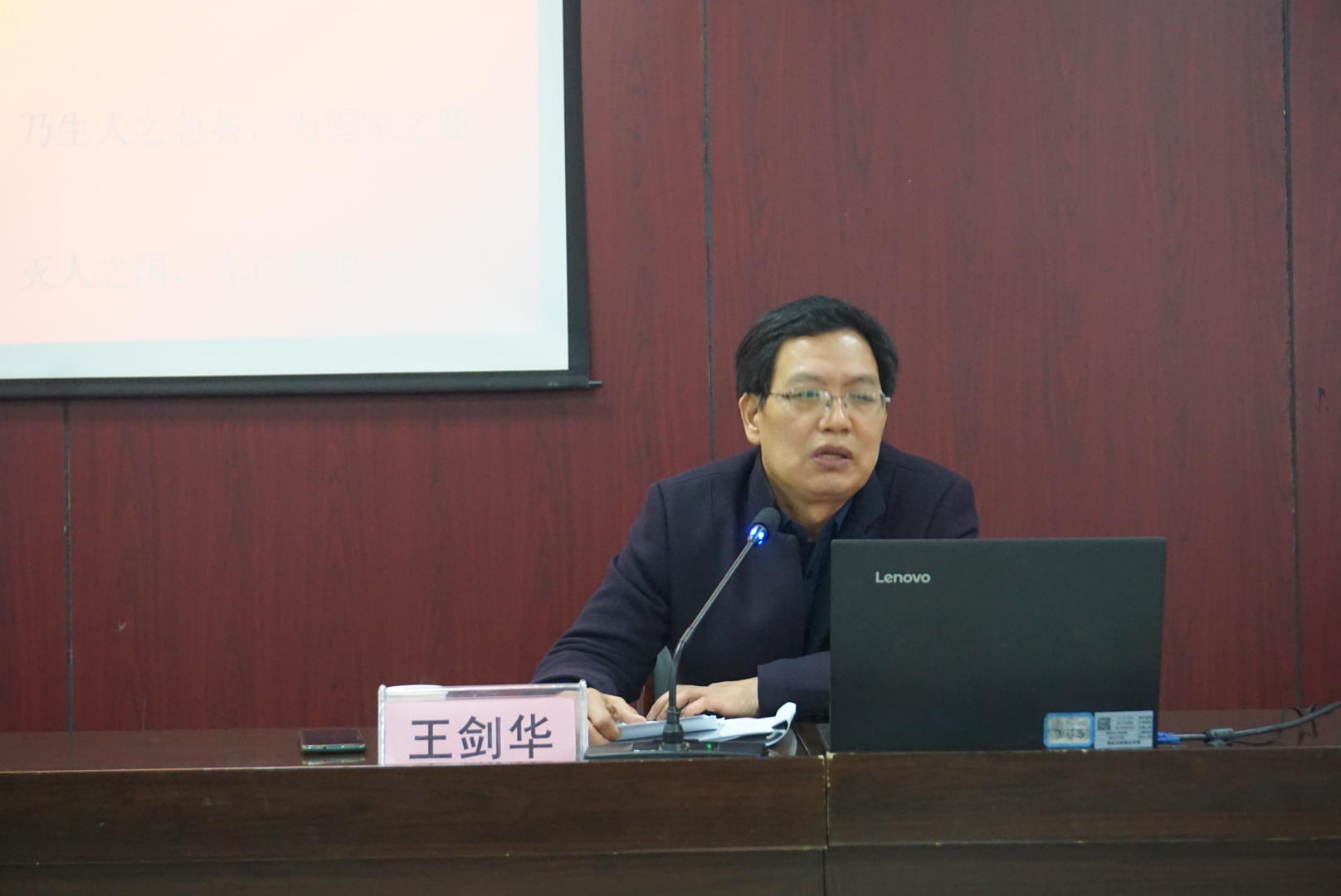 报告会上,王剑华教授以“重温百年辉煌史,共筑美好新时代”为题,从“我国的重史传统与中央学史号召;百年辉煌史的框架和主题;历史和人民选择了中国共产党;从党的三代领袖毛泽东、邓小平、习近平看增强核心意识;学好党史为共筑美好新时代汲取智慧和力量”等五个方面讲述了我们党百年的辉煌史,报告中运用了大量的史实和案例,以独特的理论视角,感人至深的典型实例,在历史与现实、理论与实践的贯通中阐述了中国共产党艰苦卓绝、光荣辉煌的奋斗历程,帮助大家对党光辉艰辛的百年奋斗历程有了更深层次的理解认识,进一步启示广大党员干部要从党史中汲取智慧力量,坚定理想信念,践行初心使命,在新征程上砥砺前行。