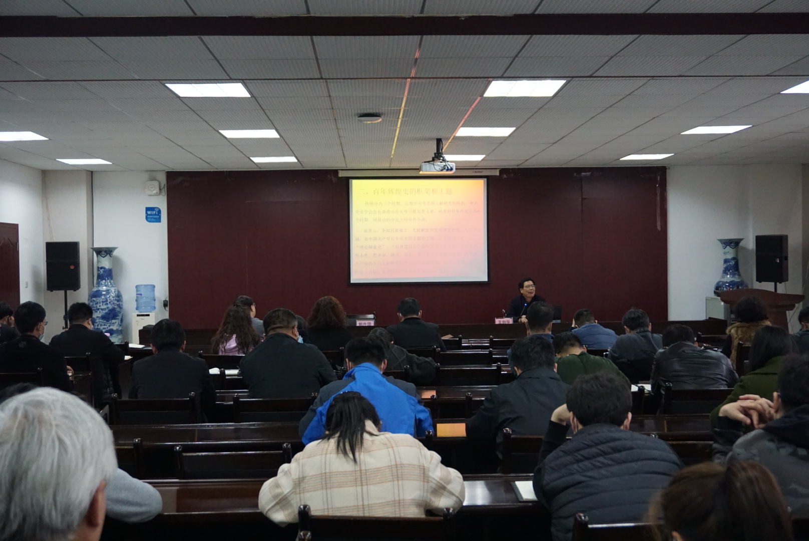 4月2日下午,机关党史学习教育专题辅导报告会在长安校区德勤楼第五会议室举行。申搏马克思主义学院王剑华教授受邀作辅导报告,机关全体党员干部到会聆听。报告会由机关党委书记郭升团主持。