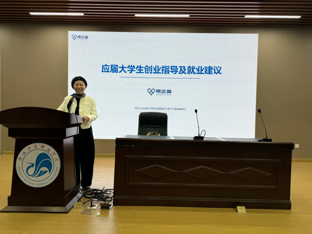 2024年10月30日,经济与管理学院在二教楼B1报告厅顺利举办了以“应届大学生创业指导及就业建议”为主题的专题讲座。本期讲座邀请了西安云智创想管理咨询有限公司总经理、陕西新疆商会理事杨秀华女士。讲座由张薇老师主持,创新创业教育教学研究中心的老师们及财务管理专业的学生积极参加。