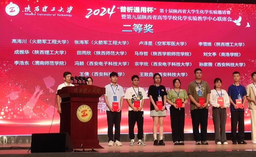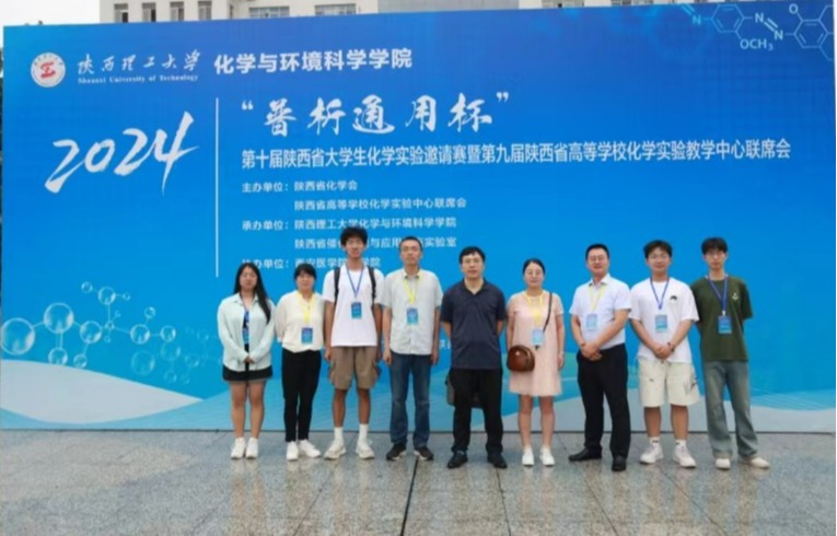 7月12至14日,由陕西省化学会和陕西省高等学校化学实验教学中心联席会主办、陕西理工大学承办,西安医学院药学院协办的“普析通用杯”第十届陕西省大学生化学实验邀请赛暨第九届陕西省高等学校化学实验教学中心联席会在陕西理工大学举行。来自省内26所高校的108名学生代表参加了比赛。由李连庆教授带队,赵大洲、赵咪娜、肖正凤、王超等老师担任指导教师的申搏代表队获优秀团队奖,马存哲获得二等奖,刘嘉新、朱星宇、武宇杰获得三等奖。