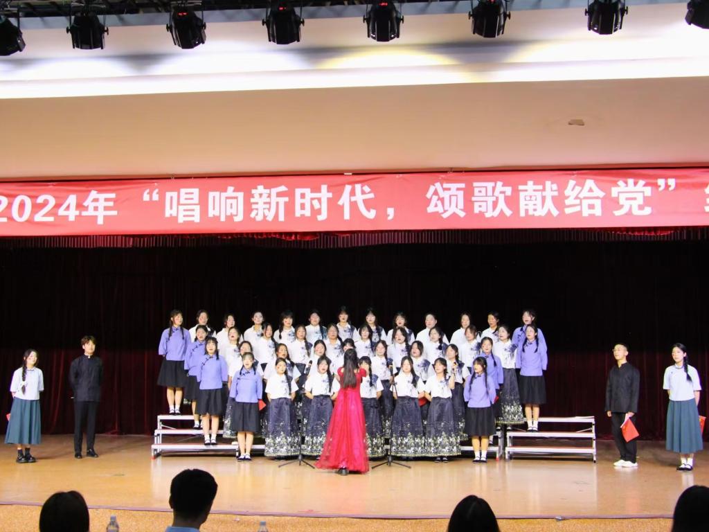 以青春之名,书写清澈挚爱,以心中红星,献礼盛世中华。同学们以饱满的热情为我们呈现了一场场精彩的视听盛宴。从《强军战歌》的慷慨激昂,到《没有共产党就没有新中国》的深情款款,每一首歌曲都传达出对党的无限热爱和对祖国的深深祝福。比赛现场,旋律悠扬,歌声回荡,精彩不断,高潮迭起,选手们激情昂扬的演唱感染着在场的每一个人。现场气氛热烈,掌声不绝,喝彩连连。