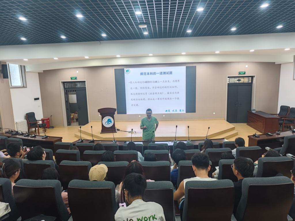 为了进一步做好2021级数学与应用数学专业的教育实习和毕业论文工作,引导学生在暑期做好实习前的各项准备,推进实习工作的顺利开展,帮助师范生对教育实习有更为全面的认识,同时做好毕业论文准备工作,数学与统计学院于7月2日至4日在积学楼B1开展了系列讲座,我院副院长丁剑洁、教育教学技能专任老师、2021级辅导员和全体学生参加了这本次活动。系列讲座由我院应用数学系主任曹明主持。