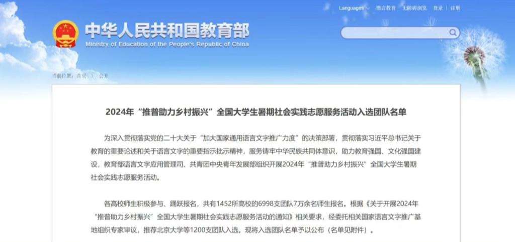 本次活动由教育部语言文字应用管理司、共青团中央青年发展部组织开展,文学院团队曾于2021、2022年两次入选。