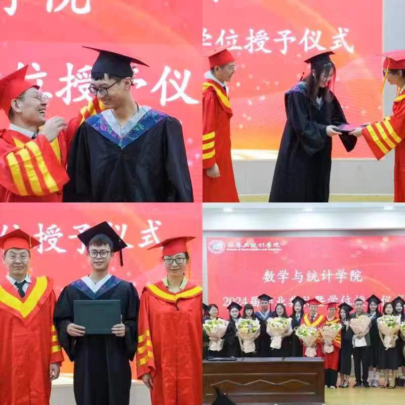 四是营造爱校感恩氛围。将爱校荣校的感恩教育贯穿毕业生思想教育全过程,通过我院2024届《青春织锦绣 前程绽芳华》毕业晚会、2024届毕业典礼暨学位授予仪式、数学与统计学院2024年学风建设表彰大会暨学生工作表彰带大会等活动引导毕业生回顾在校学习点滴,感悟母校培养之恩。鼓励毕业生以实际行动表达对母校的感念之情,引导毕业生成长思源、成才思进,遵规守纪、善始善终,营造温馨和谐的毕业氛围。