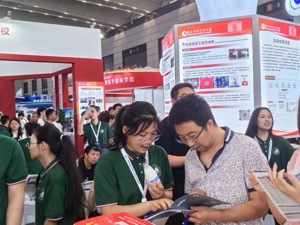 2024年6月25日,sunbet申搏官方网站生命科学与食品工程学院“非你莫黍”大学生创新团队携其创新成果——黍米乳参展第十二届陕西高等教育博览会,得到相关领导的关注,并聆听了“非你莫黍”大学生创新团队负责人马润蕾的汇报,并与团队进行了深入交流,对他们的双创成果——黍米乳,给予了高度评价。鼓励团队成员继续努力,争取更大的成绩。