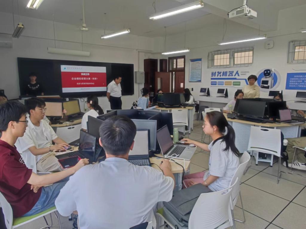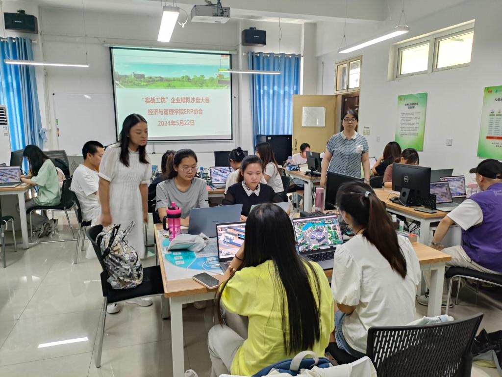 2024年5月22日下午四点,申搏社团重大精品项目“实战工坊”—企业模拟经营大赛在博文楼409教室和积学楼501教室成功举办。本次比赛由校团委主办、经济与管理学院ERP协会承办、新道科技股份有限公司技术支持。大赛共吸引了经济与管理学院、教育科学学院、生命科学与食品工程学院、信息工程学院、外国语学院等多个院系上百名学生参加,有15支队伍挺进决赛。