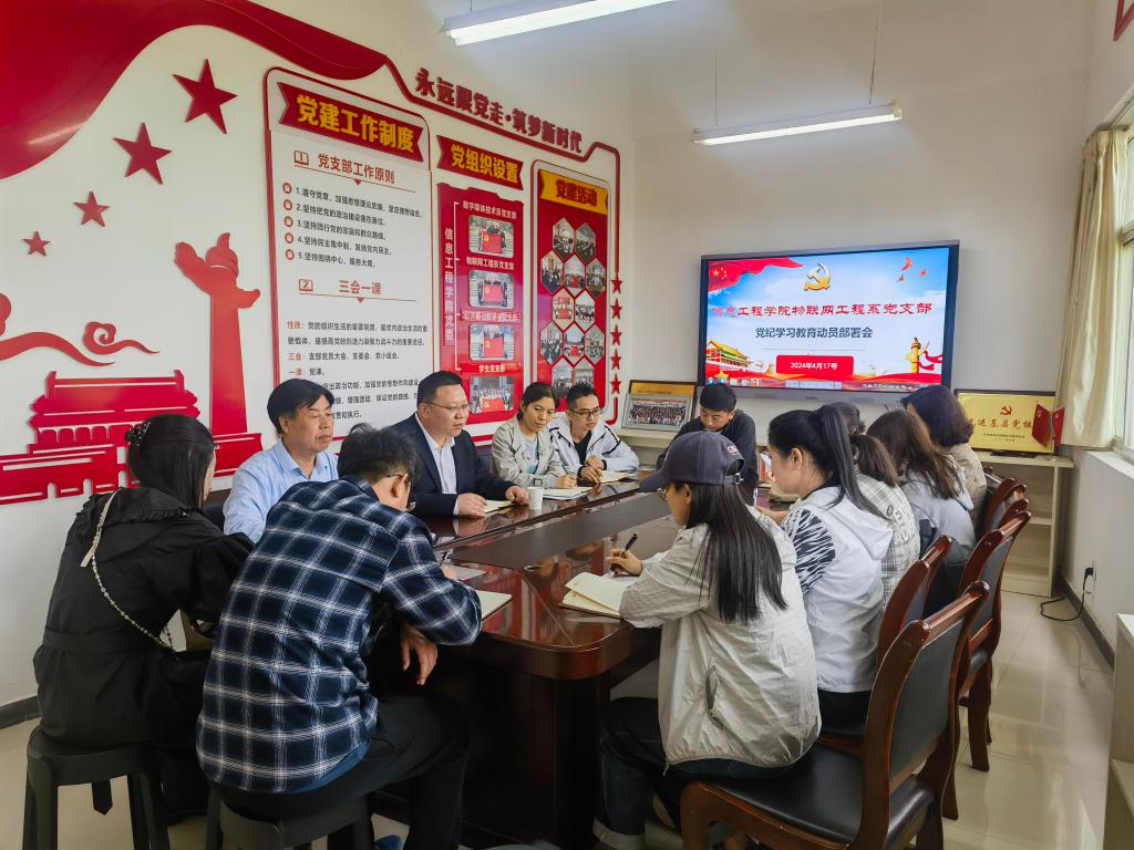 【物联网工程系党支部】为深入学习贯彻习近平总书记关于党纪学习教育的重要讲话和重要指示精神,加强党的纪律建设,推动全面从严治党向纵深发展,认真落实校院两级党委党纪学习教育动员部署会工作要求,4月17日上午,信息工程学院物联网工程系党支部在积学楼A202室召开党纪教育动员部署会,支部全体党员参加,物联网工程系党支部书记姚文苇主持会议。