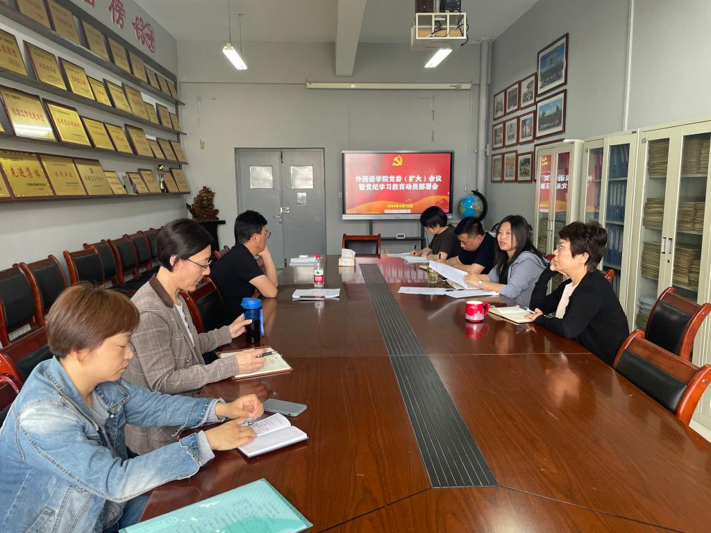 【外国语学院党委】4月15日下午,外国语学院党委在学院会议室召开党委(扩大)会议暨党纪学习教育动员部署会。学院党委书记高海燕主持会议。各党委委员、各支部书记参加会议。
