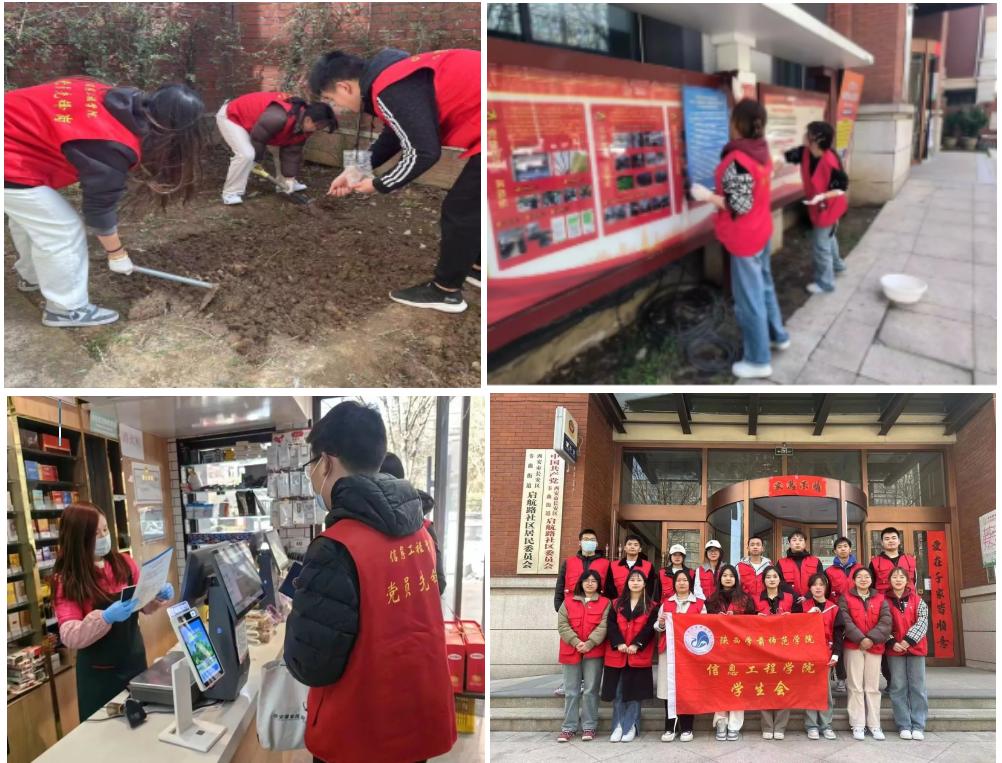 在校外,信息工程学院学生党支部联合团总支于2024年3月7日联合启航路社区开展“党员先锋岗,服务在社区”基层志愿服务劳动教育实践活动。活动中,以抽取盲盒任务结对完成社区垃圾分类宣传、社区办公一小时体验并处理相关事宜、社区公共设施清洁、小区消防安全检查及非机动车乱停乱放占用消防通道等安全隐患排查及提醒、辖区商铺消防设施检查及安全提醒、文明交通宣传及现场提醒等十余种义务劳动。