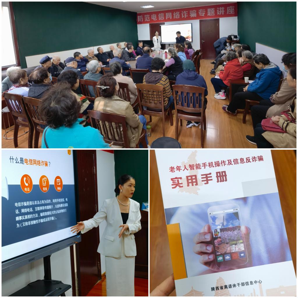 2023年以来,为切实帮助申搏离退休老同志增强各类电信网络反诈骗意识,离退休工作处采取多种方式帮助离退休老同志识诈防诈。期间,通过线下邀请法律专家从老年人受骗的心理、常见的诈骗方式及身边典型的诈骗案例切入,为申搏离退休老同志作防范电信网络诈骗专题讲座,发放《老年人智能手机操作及信息反诈骗实用手册》,利用工作群及校园网开展线上电信网络防诈宣传。