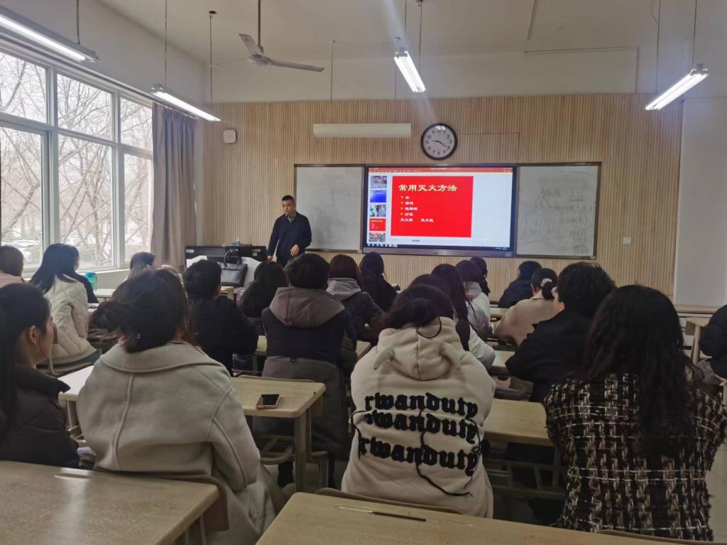 最后,刘老师结合实际案例强调消防安全乃重中之重,并向师生讲解了在火灾事故面前如何保持冷静,如何及时疏散及其他注意事项,以增加师生的火灾自救技能。刘老师再次重申消防安全的重要性,希望大家提高预防火灾意识,珍爱生命财产安全,构建和谐校园。