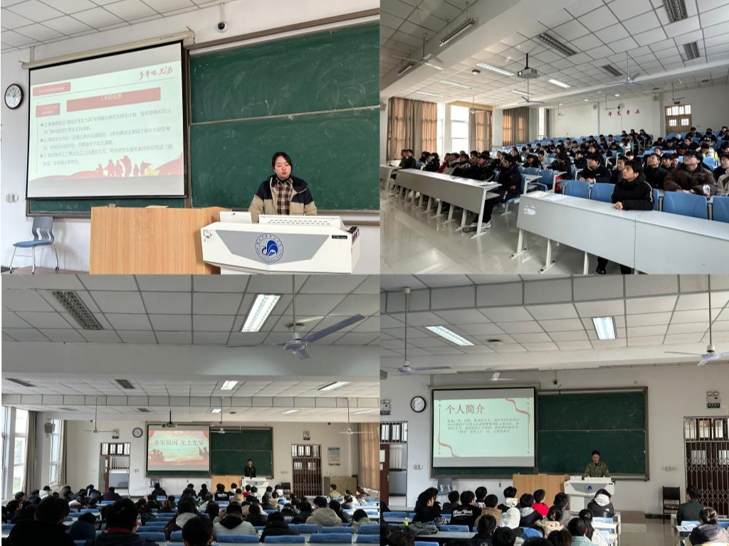 庞书记首先作了大学生参军入伍政策宣讲。她从“参军意义、参军条件、参军流程、优惠政策”等四个方面进行了详细讲解,重点讲解了大学生参军入伍的十六条优惠政策,包括考研优惠、教育资助、家属优待、选取军士、考学提干、定向招录等,并号召同学们用实际行动报效祖国,在火热的军营中激扬青春,放飞梦想!随后,2022级两名退伍复学的同学分享了自己的参军经历。他们表示,军旅生涯是一次从外到内的磨砺,号召同学们积极投身于祖国的国防建设和军队建设的伟大事业之中。