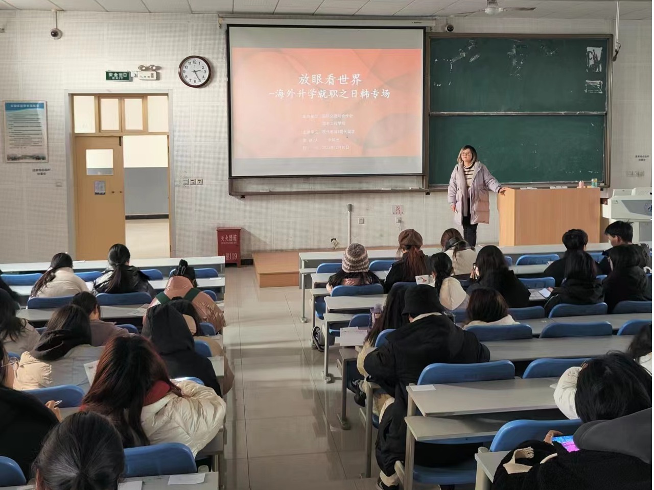 为开拓学生的国际视野,拓宽学生成长途径及毕业生出国深造渠道,进一步深化国际交流与合作,12月20日下午,国际交流与合作处(港澳台事务办公室)联合信息工程学院举办“放眼看世界 海外升学就职之日韩专场”宣讲会。来自信息工程学院的百余名学生参加宣讲会,积极参与互动,了解日韩信息工程领域留学就业相关流程和信息。