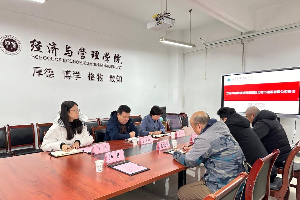 为进一步对接企业用人需求,拓展毕业生就业渠道和岗位资源,全力促进我院毕业生高质量就业,2023年12月13日下午,经济与管理学院联合中国能源建设集团西北城市建设有限公司在长安校区博文楼B411会议室举办校企合作洽谈会。中能建西北城市建设有限公司总经理助理兼人力资源部主任王永正、中能建西北城市建设有限公司人力资源部副主任兼人才管理中心经理张福来、中能建西北城市建设有限公司人才管理中心副经理惠晓勇、中能建西北城市建设有限公司人力资源部教育培训专员师丹以及经济与管理学院党委书记张建辉、学院院长崔洁、学院党委副书记陈璐、2024届毕业班辅导员共同参加了此次合作洽谈会。
