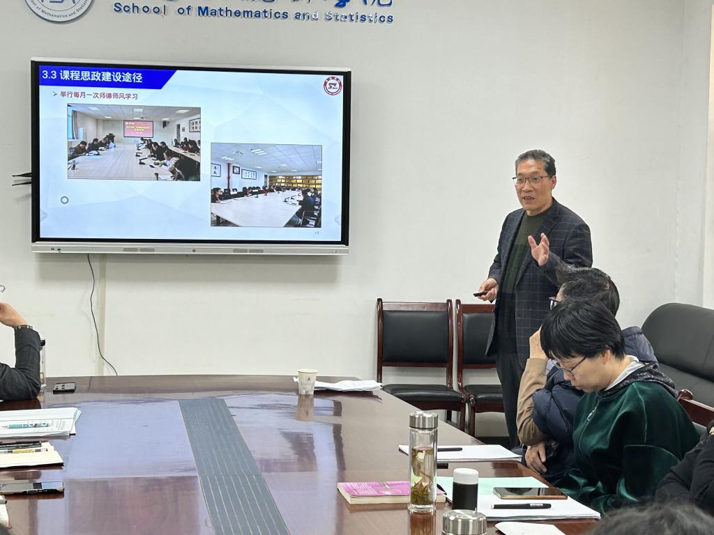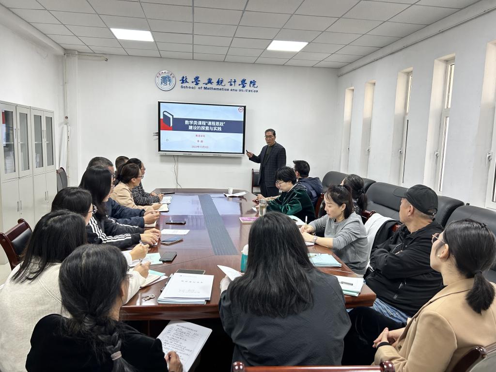 为加强我院教师课程思政建设工作,提升教师课程思政建设专业素养和教育教学能力,落实立德树人根本任务。11月3日,在积学楼319会议室,数学与统计学院邀请陕西省高等学校教学指导委员会数理类工作委员会委员、陕西省教学名师、商洛学院党委委员、三级教授李超来我院做题为《数学类课程思政建设的探索与实践》的报告。数学与应用数学学院全体专任教师参加了报告会,会议由李宏飞院长主持。