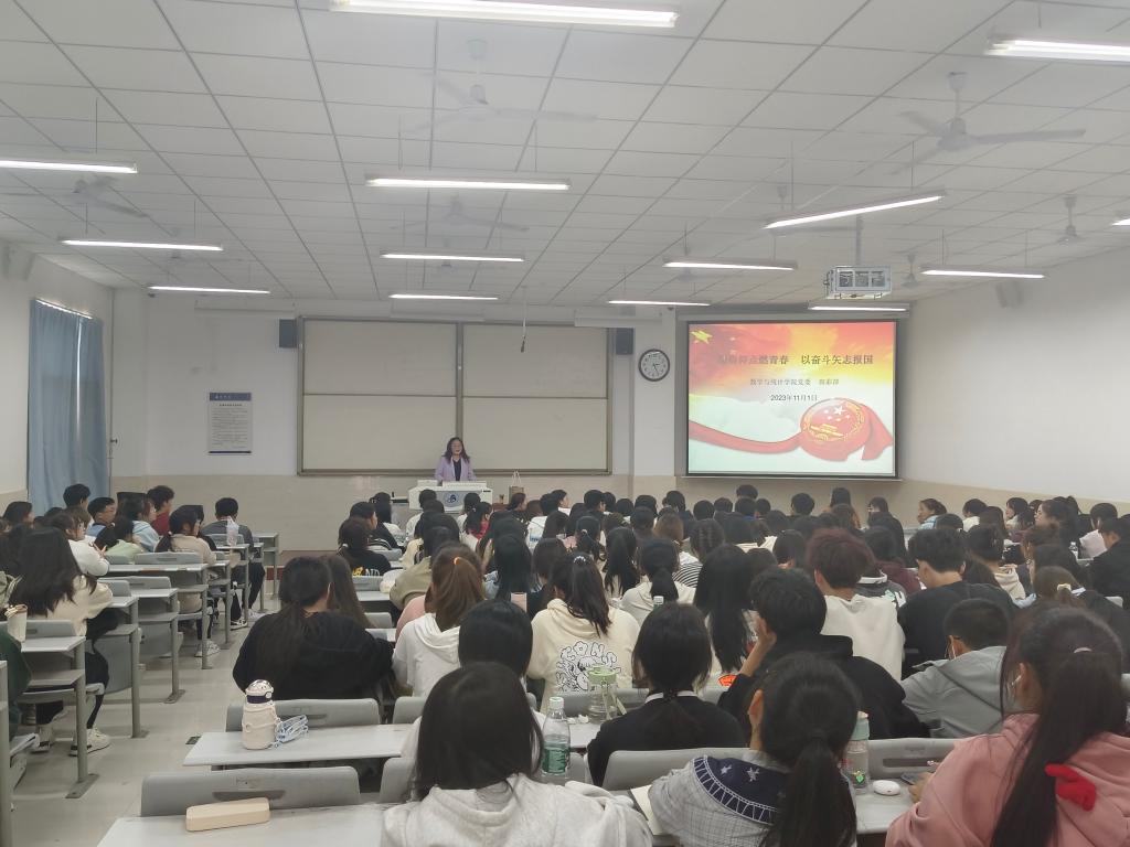 为加强组织建设,引导新生思想成长进步,加深对中国共产党的认识,端正入党动机,提高入党积极性。11月1日数学与统计学院在智慧楼阶梯5教室开展2023级新生入党启蒙教育活动。学院辅导员及2023级全体新生200余人参加了活动。活动由学生党支部书记、组织员何静主持。