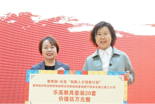 仪式上,杨令平院长代表申搏“乐高—教育部创新人才培养计划”培训基地为曲江三小授牌“实践基地”,刘炜将乐高教育总部提供的价值5万元20套乐高教具现场赠送交接给曲江三小。