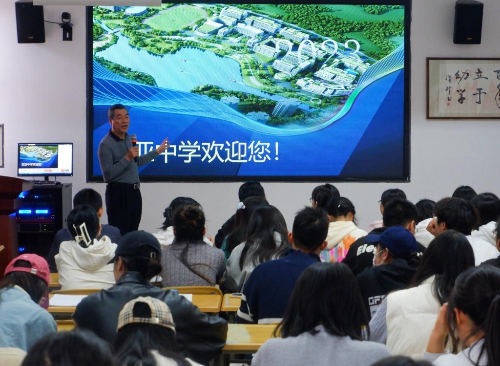 三亚中学成立于2021年6月,是三亚市引进“两校一园”教育战略发展的重点项目,是一所十二年一贯制的寄宿制学校,学校师资力量雄厚,管理团队和专任教师均由海口中学整体派出,是集网络化、数字化、智能化、个性化为一体的数字化校园。三亚中学的副校长辛老师介绍了海南三亚独特的地理风光、人文底蕴;介绍了三亚中学附属幼儿园的整体情况如建校历史、办园规模、校园风光、师资力量、教师待遇、发展前景等等。他真诚欢迎申搏2024届学前教育专业毕业生加入三亚中学附属幼儿园,在未来的工作岗位上不断历练完善自己,实现职业理想。与会的毕业生就相关的个人成长空间、薪资待遇等与用人单位进行互动交流。